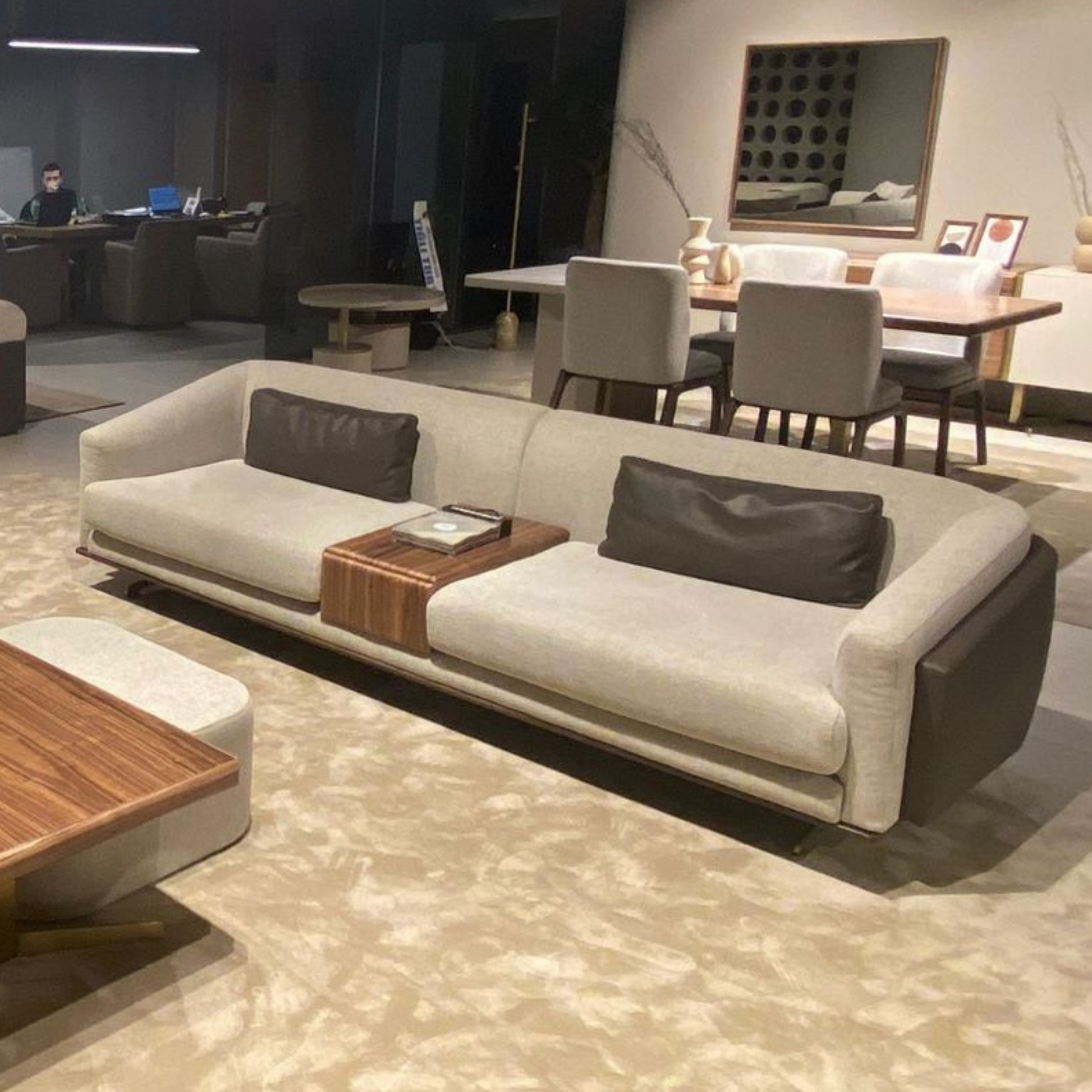 Redefine lounging with the Moqo 4 Seater with Table. This multifaceted sofa features a built-in table and sectional lounger, offering the ultimate in customization and comfort. With its modern design and premium upholstery, the Moqo sofa transforms your living space into a luxurious retreat that adapts to your lifestyle and preferences.