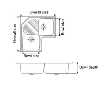 |  Sink Bowl 1 Dimensions | 14 x 16 x 8 inches |