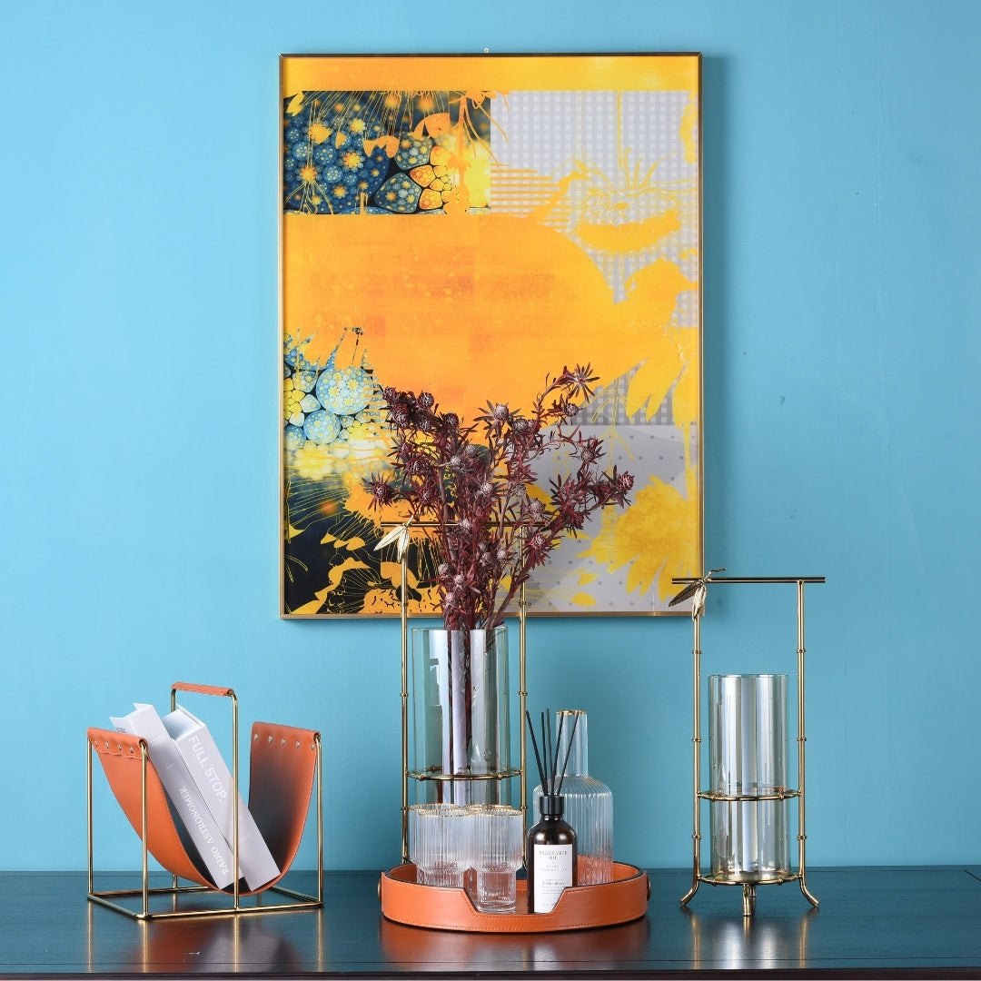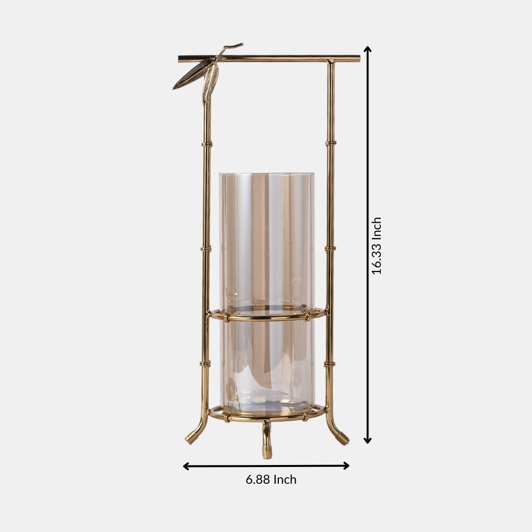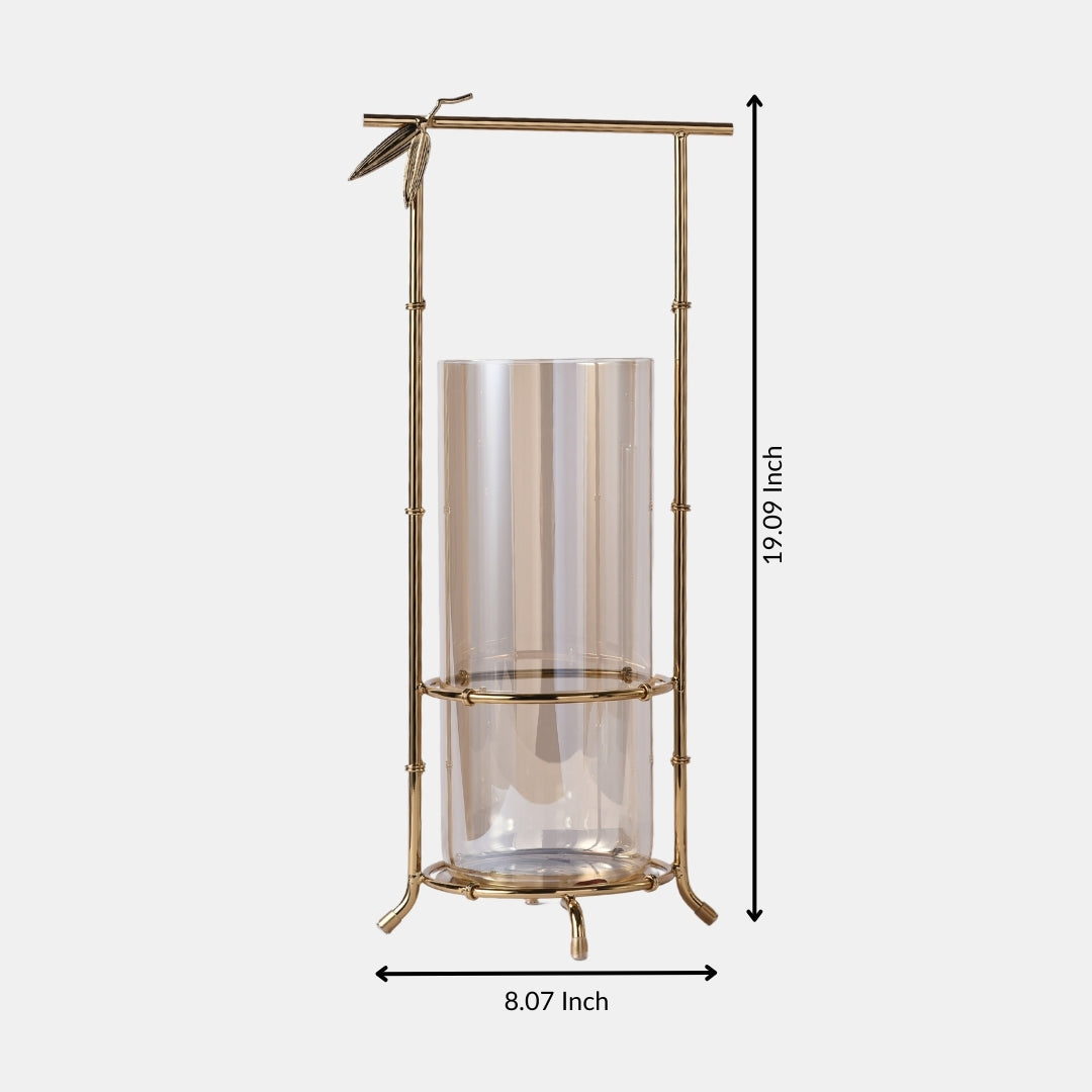 The Elongated Glass Vase, encased in a classic copper frame and adorned with an elegant fly atop, is a fusion of vintage charm and modern sophistication. Crafted with meticulous attention to detail, this vase showcases an elongated glass design held within a timeless copper frame. The elegant fly accent adds a touch of whimsy and intrigue. Whether placed on your dining table, mantel, or as a centerpiece, it becomes a statement piece that captures the essence of classic and contemporary design. With this vase, you're not just decorating; you're celebrating the beauty of contrasts.