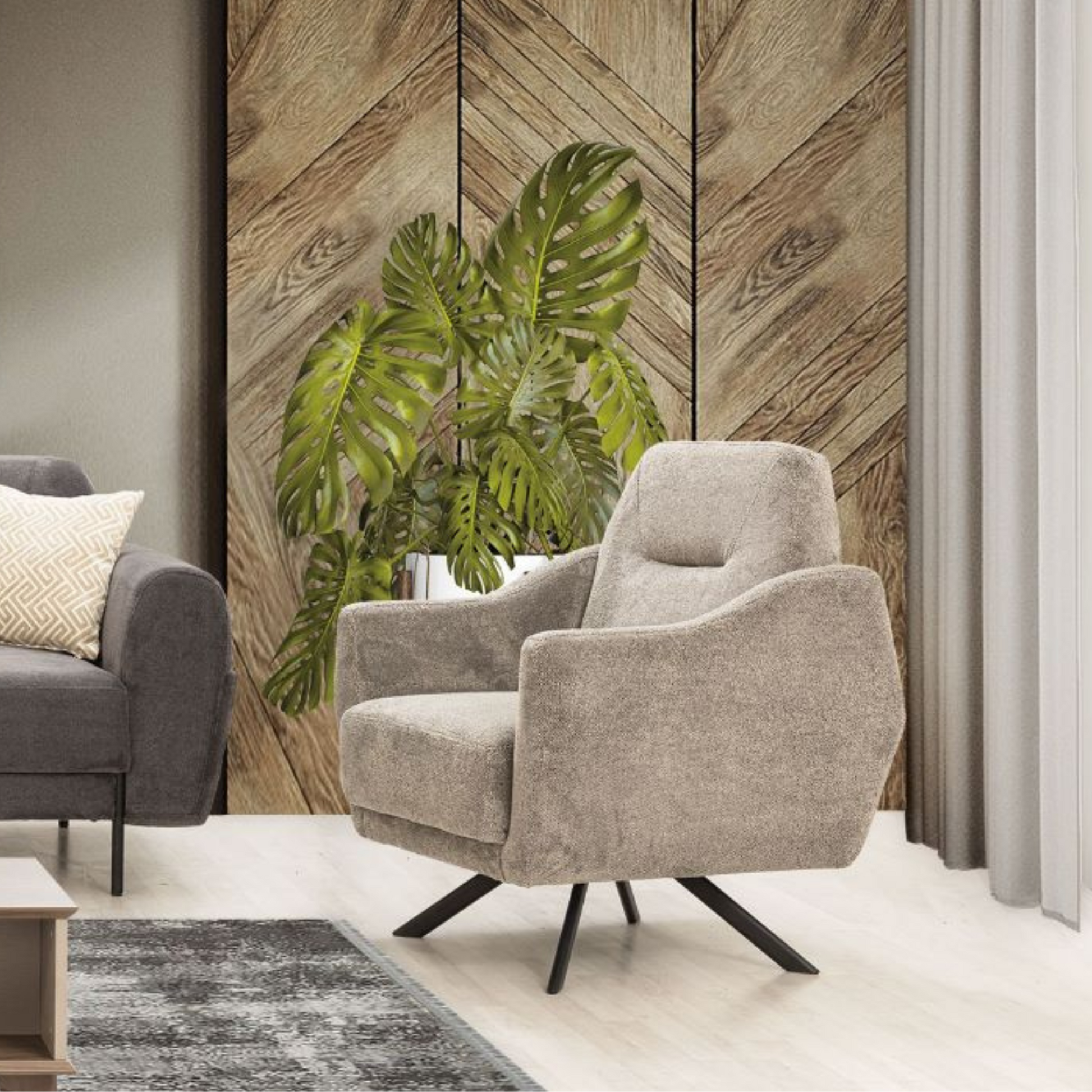 Create a serene retreat with the Orlando Armchair in Light Grey. Crafted with an ash wood frame and premium Turkish fabric upholstery, this standard-sized armchair offers both style and comfort, perfect for lounging in style.