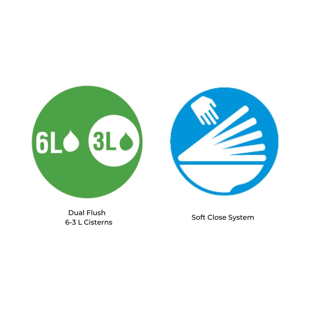 - Dual Flush 6 -3 L Cisterns: Water Saving Double Button To Choose Between a 6 or 3 Litres Flushing Volume Of Water