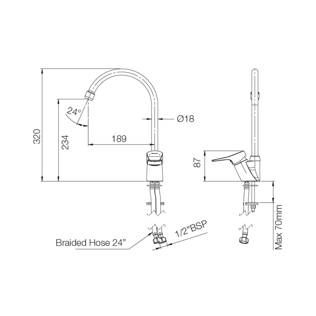Jaquar Table Mounted Regular Kitchen Sink Mixer Vignette Prime VGP-81173B with Swinging Spout in Chrome Finish