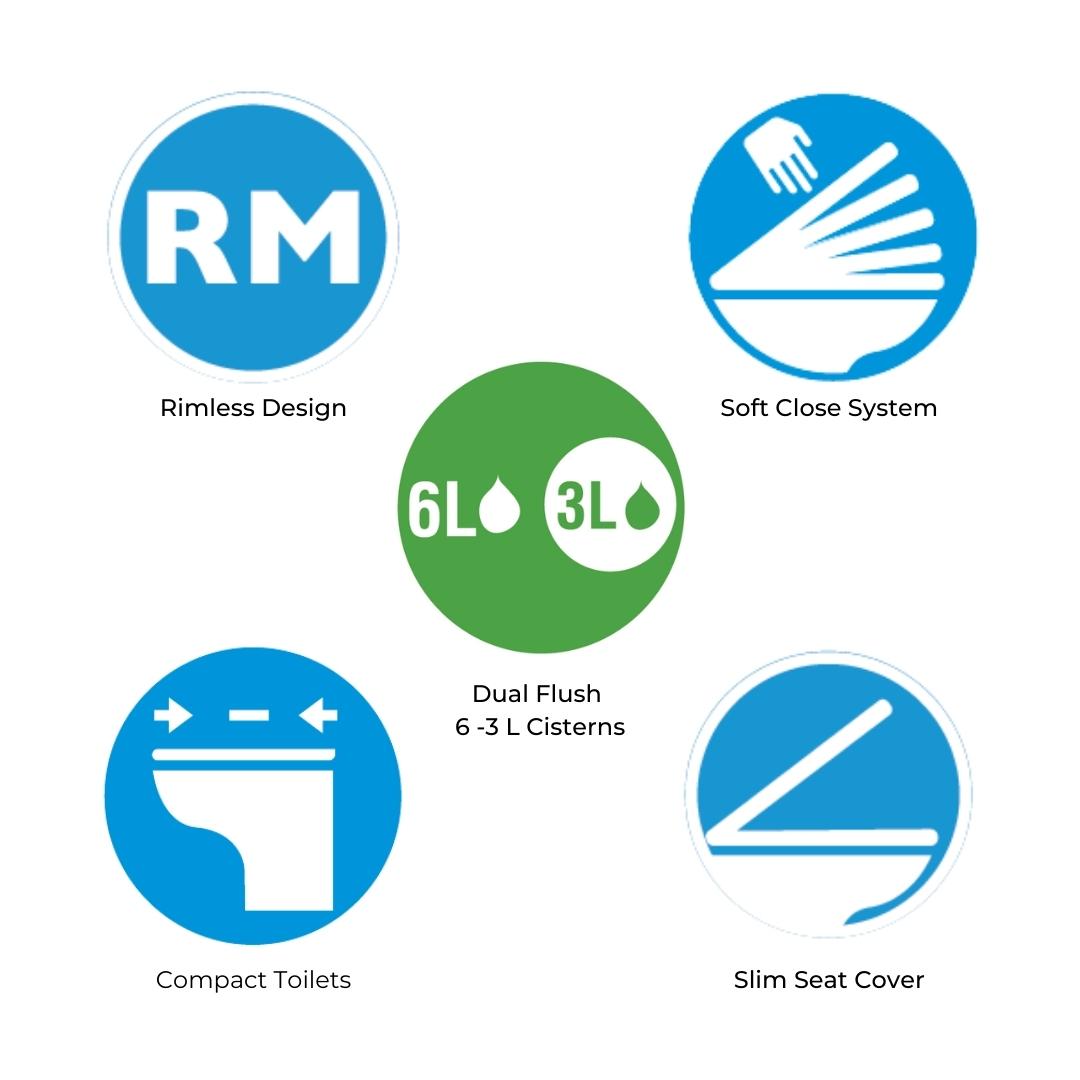 - Dual Flush 6 -3 L Cisterns: Water Saving Double Button To Choose Between a 6 or 3 Litres Flushing Volume Of Water