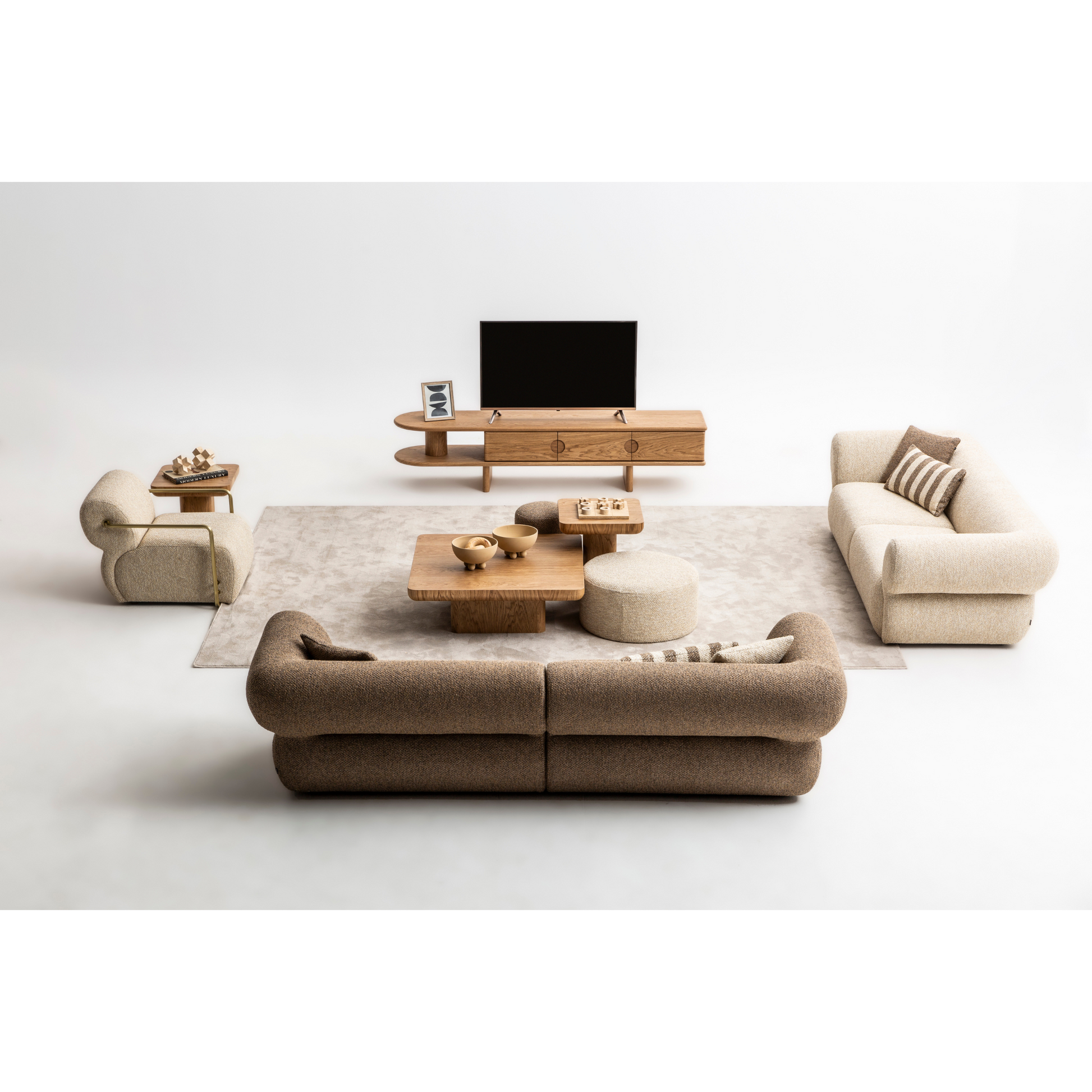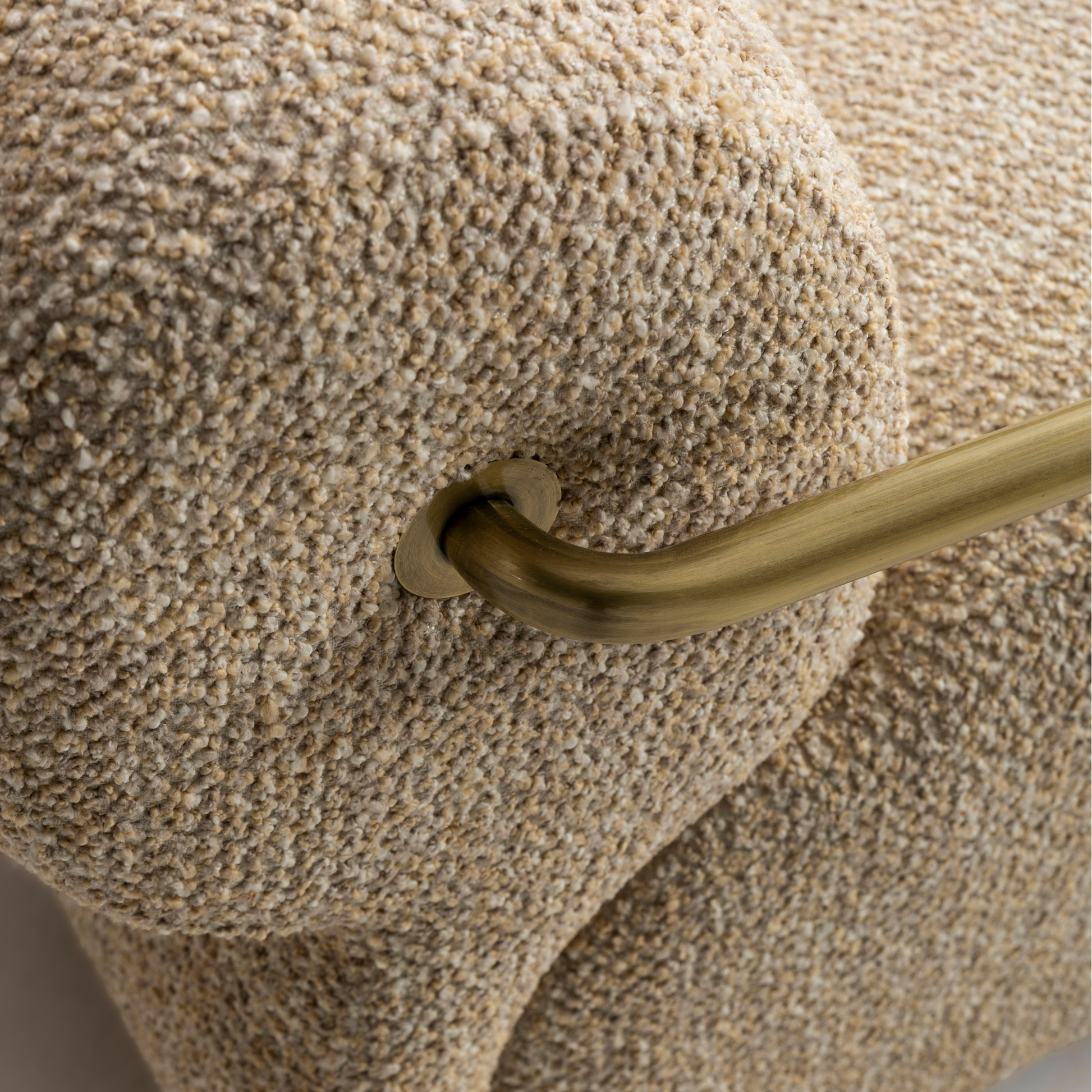 Indulge in the modern luxury of the Puffo Armchair. Crafted with a metal inner frame and Turkish boucle fabric upholstery, this armchair is a statement of refined elegance in any room. Its standard size makes it perfect for various living spaces.