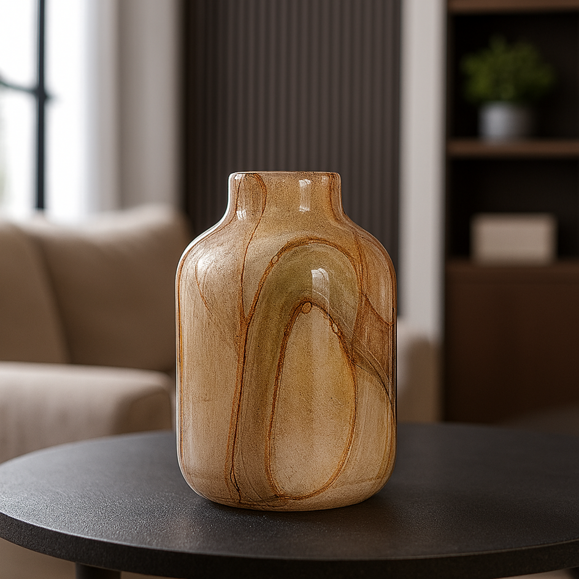 Soft Hue, Subtle Drama - The RoseSmoke Glass Vase blends gentle blush pink with moody grey in a graceful, curved silhouette. A perfect accent for modern interiors that favor soft contrasts and understated beauty.