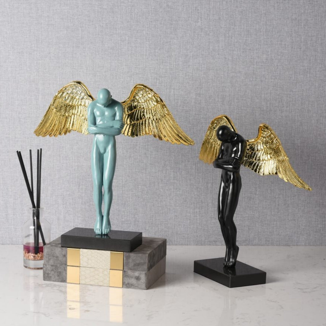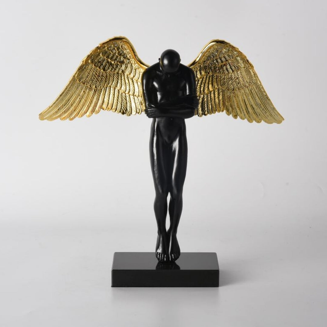The Contemporary Standing Black Angel with Majestic Golden Wings is a captivating embodiment of divine beauty and modern aesthetics. Crafted from premium resin, this angelic figurine showcases intricate detailing and a stunning black and gold color palette. It exudes an air of serenity and opulence that transcends time. Place it on your mantel, side table, or as a centerpiece to infuse your decor with an aura of mystique and spirituality. With this angel, you're not just decorating; you're creating a sense of transcendence in your home.