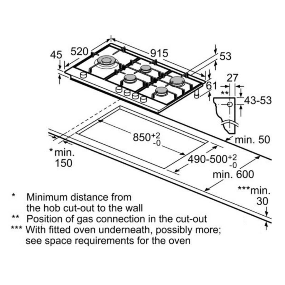 - Cutout size (HxWxD) : 4.5cm x 85-85.2cm x 49-50.2cm