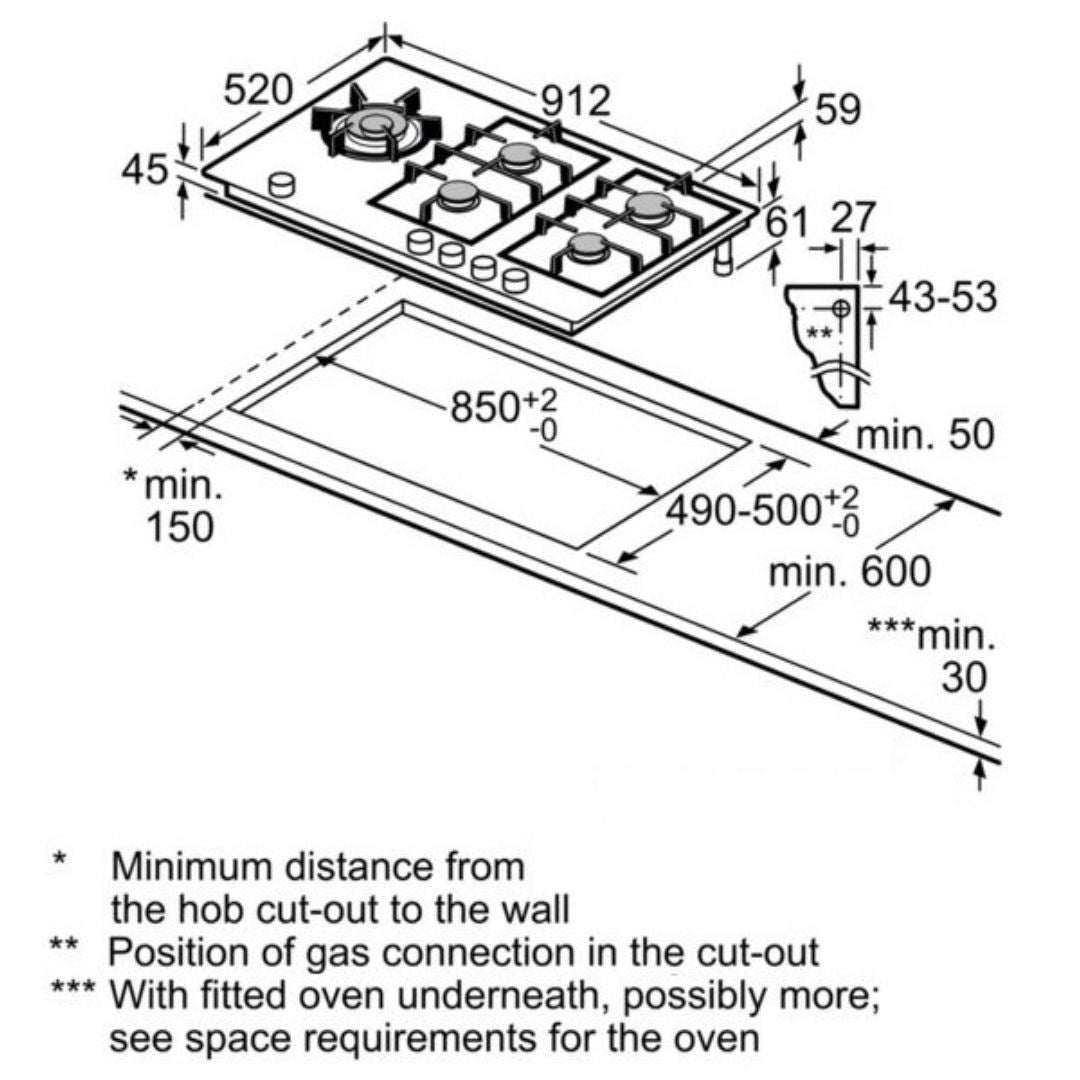 - Cutout size (HxWxD) : 4.5cm x 85-85.2cm x 49-50.2cm