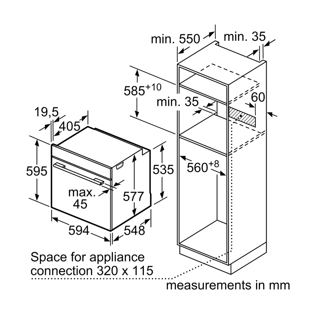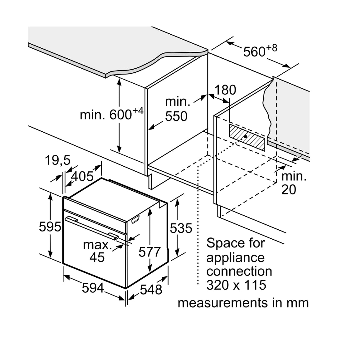 - Appliance Dimensions (HxWxD): 595 x 594 x 548mm
