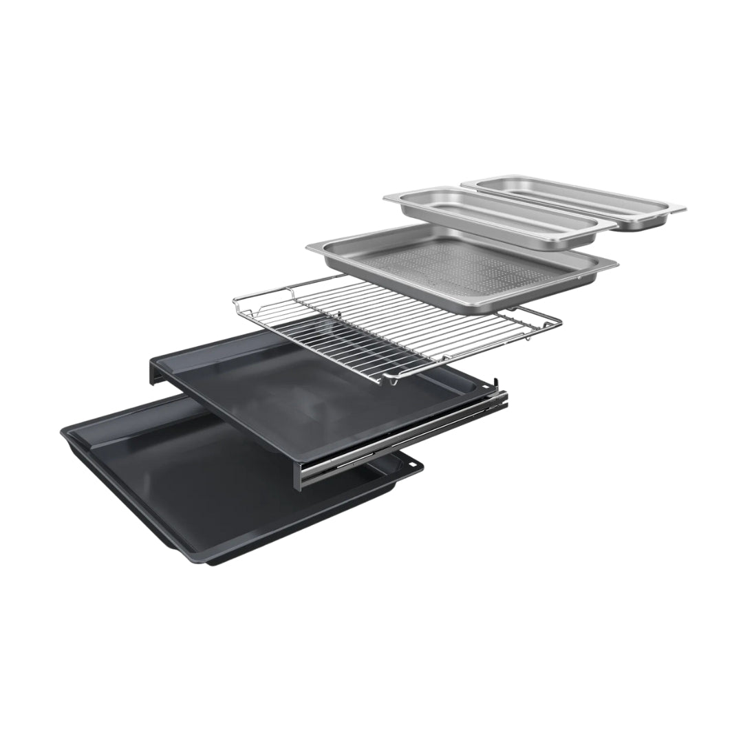 - Heating Types : 4D hot air, Bottom heat, Conventional heat, Conventional heat gentle, Deep-frozen food special, Defrost, Dehydrate, fermentation, Full width grill, Half width grill, Hotair gentle, Hot air grilling, Intensive heat, low temperature cooking, Pizza setting, pre-heating, Regeneration, Sous-vide, Steam 100%, warming