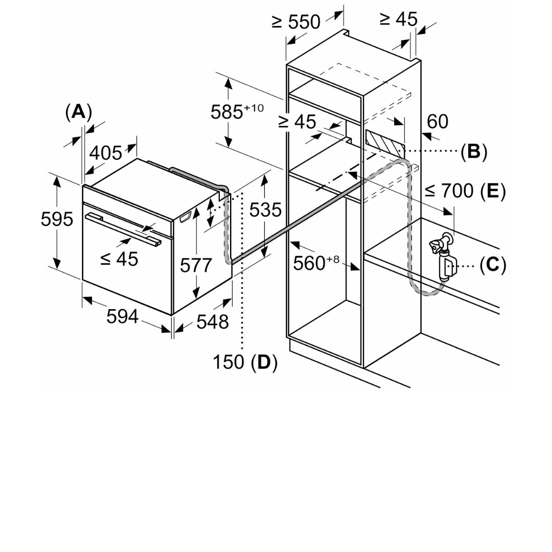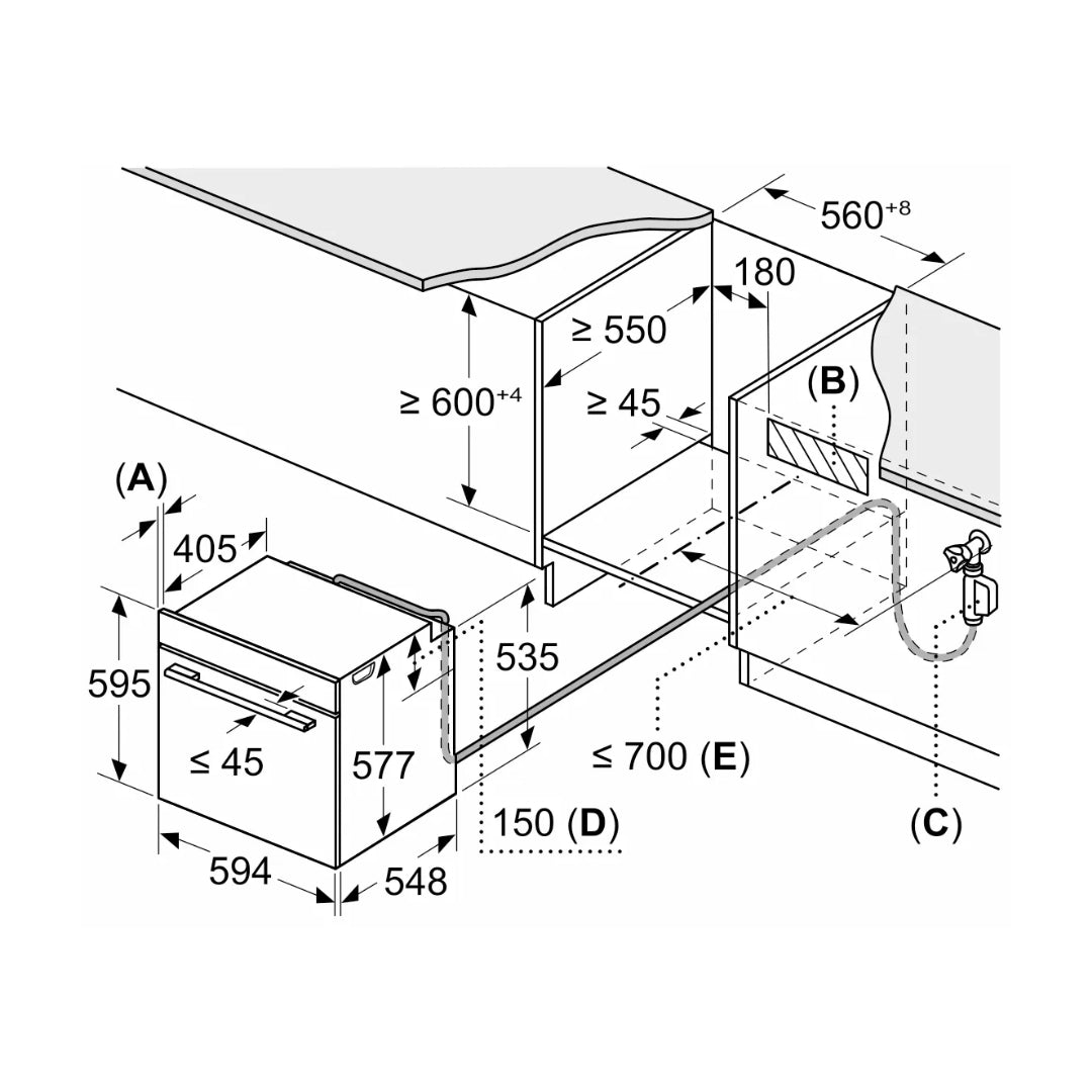 - Appliance Dimensions (HxWxD): 595 x 594 x 548mm