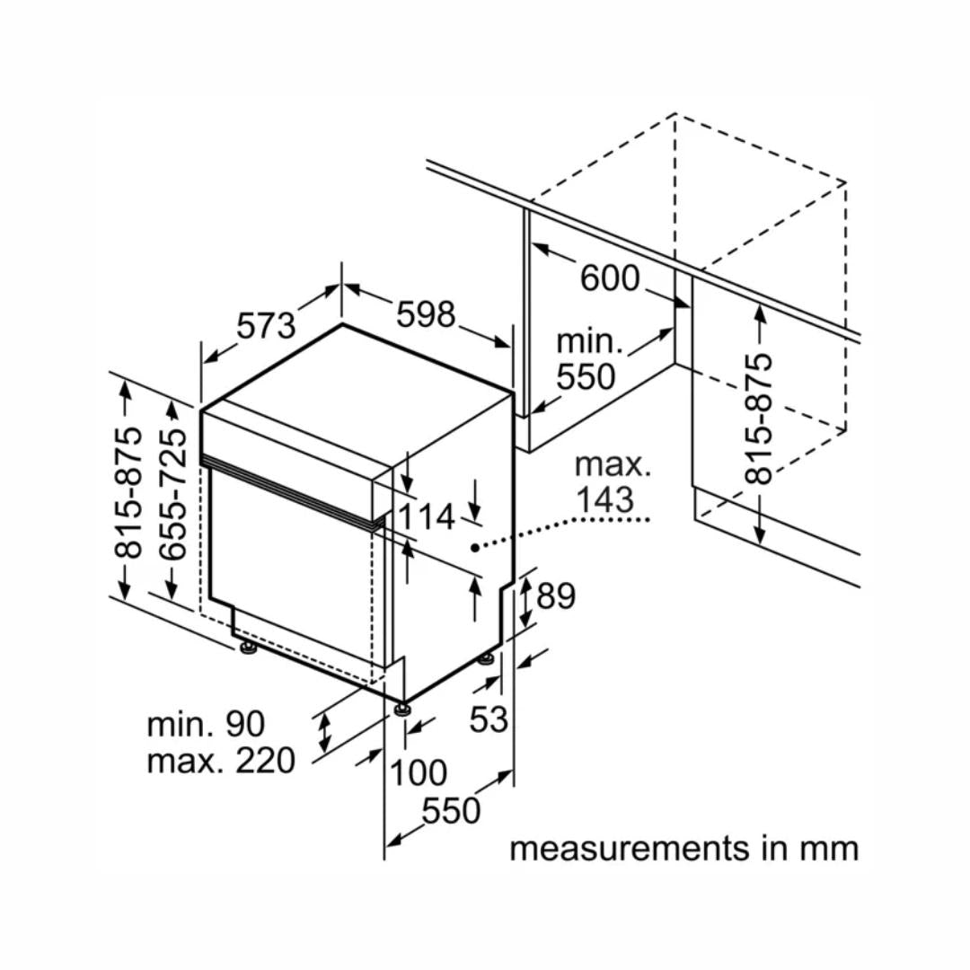 Siemens Semi Built in Dishwasher iQ700 Series SN57ZS00VI with 15 Place Settings