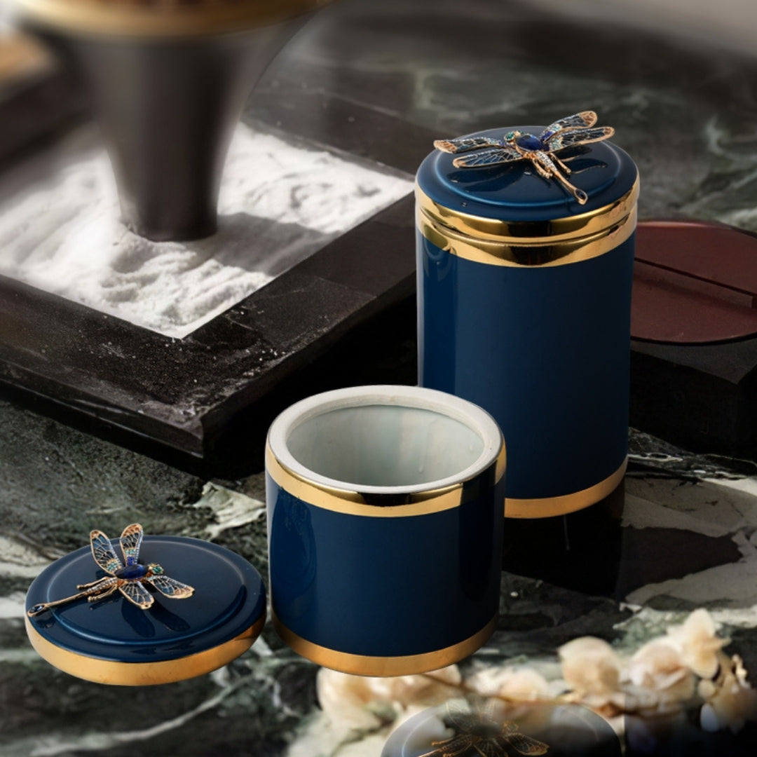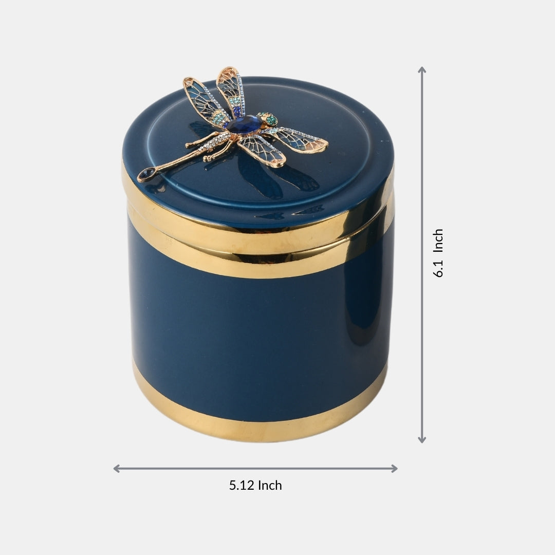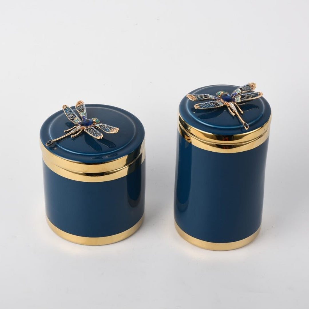 These royal blue ceramic tabletop boxes are a blend of coastal charm and functionality, enhanced by studded fluttering beauties. Crafted with meticulous attention to detail, they offer practical storage solutions while adding a touch of seaside elegance to your decor. The studded fluttering beauties provide a sense of movement and opulence. Whether used for organizing or as decorative accents, they become symbols of both versatility and coastal sophistication. With these tabletop boxes, you're not just organizing; you're infusing your living space with a hint of coastal serenity.