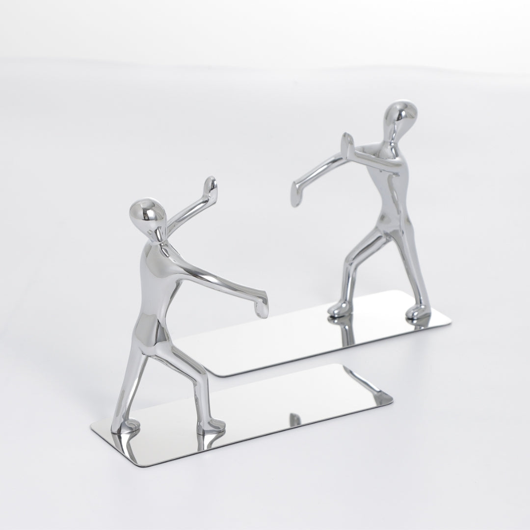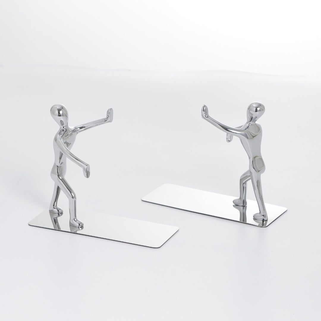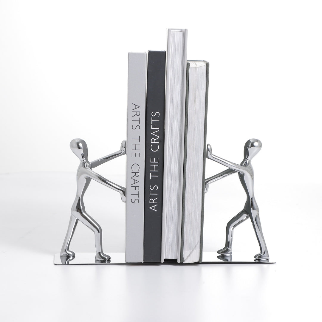 Presenting The Sterling Virtuoso: Silver Steel & Alloy Bookend, where timeless elegance meets contemporary design. Crafted with uncompromising attention to detail, this bookend is the epitome of modern sophistication. Its sleek silver facade effortlessly harmonizes with any decor, adding a touch of refined style to your literary haven. Designed to gracefully support your books, it seamlessly blends form and function to elevate your bookshelf to a higher aesthetic plane.