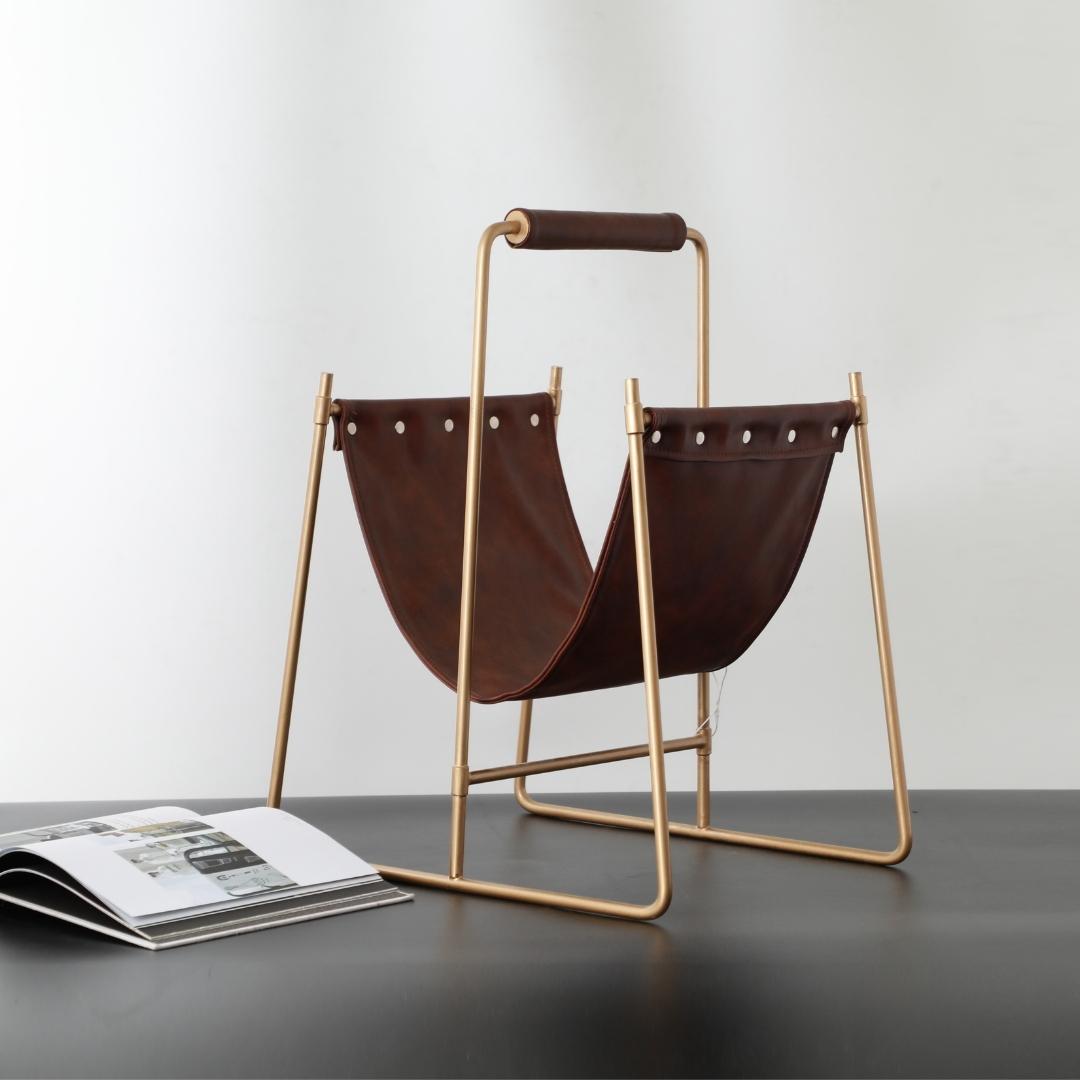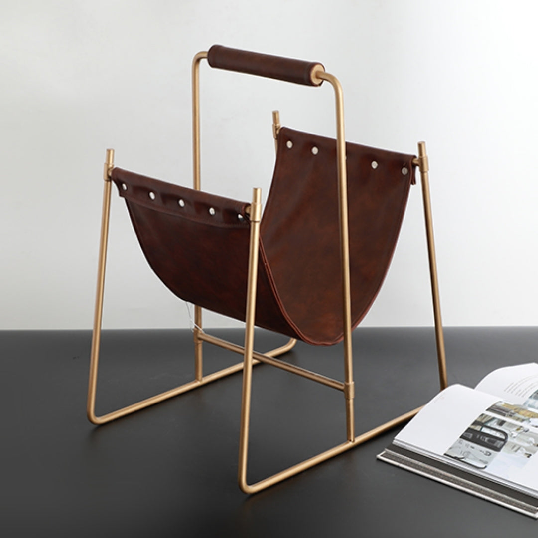 Timeless Treasures Antique Brass Iron & Leather Magazine Holder