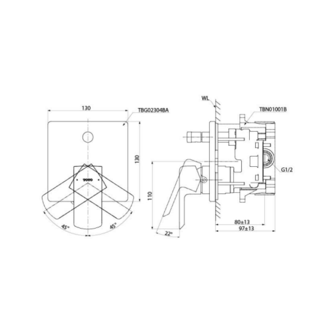 Toto 2 Way Diverter GR TBG02304BA - Chrome Finish