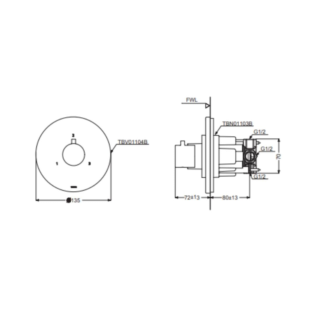 Toto 3 Way Thermostatic Diverter Concealed Thermostat TBV01102B - Chrome Finish