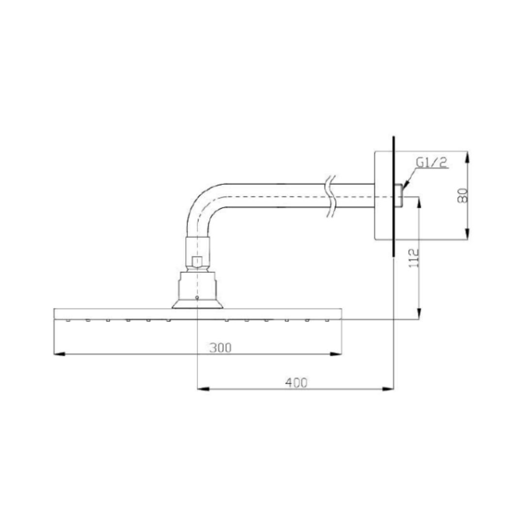 - Aerial Fixed Shower Head With Shower Arm, 300 mm, Square