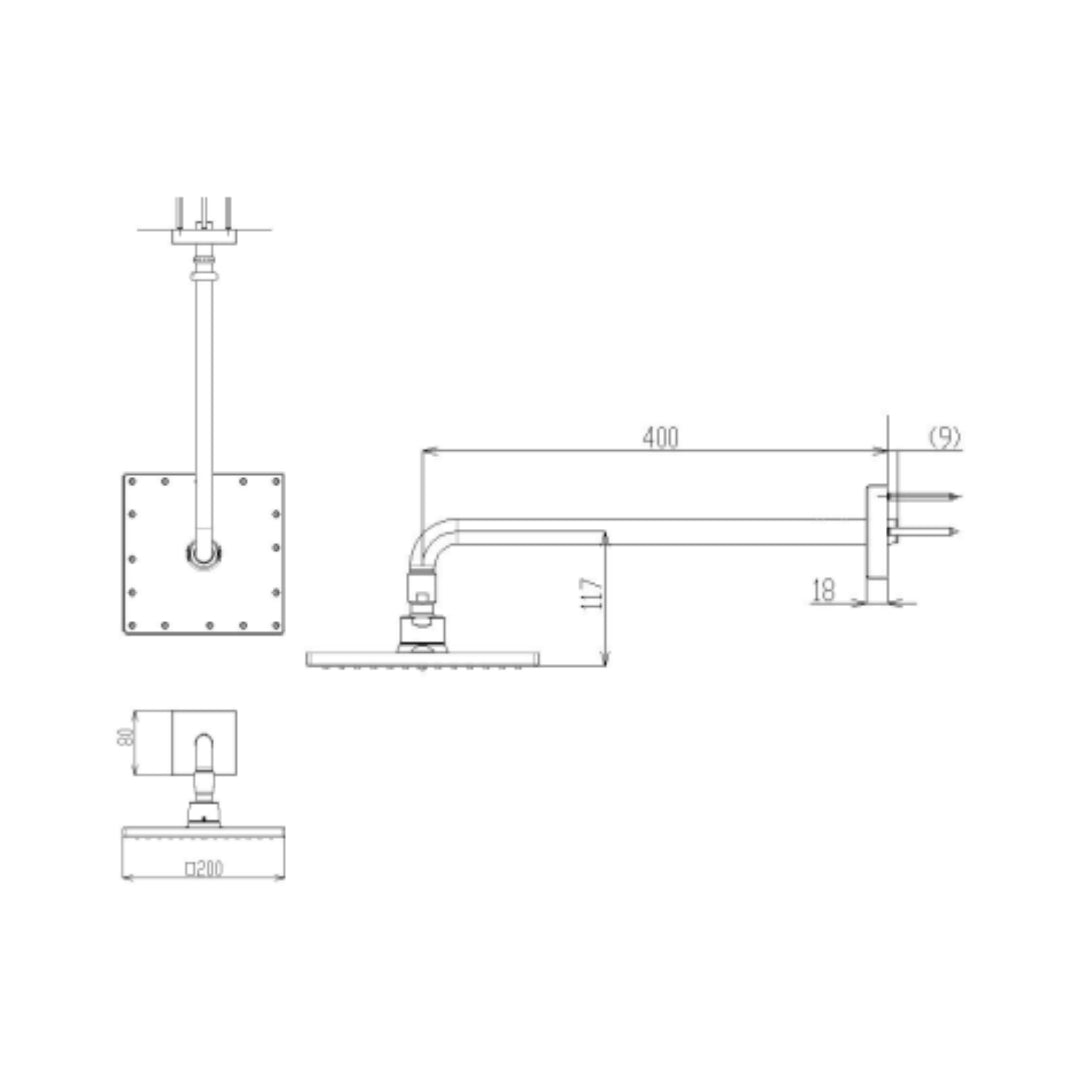 - 1 mode function with Square shape over head shower (Comfort Wave)