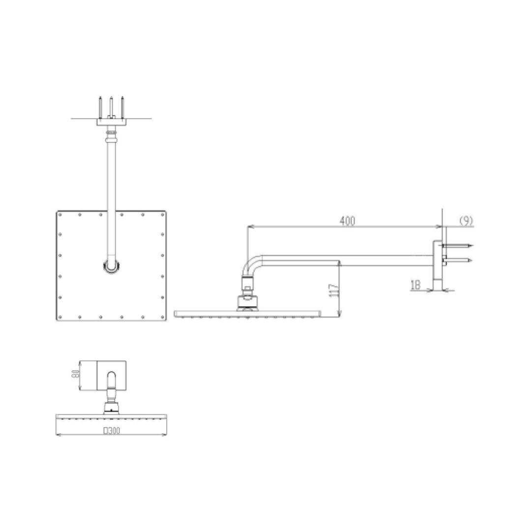 - 1 mode function with Square shape over head shower (Comfort Wave)