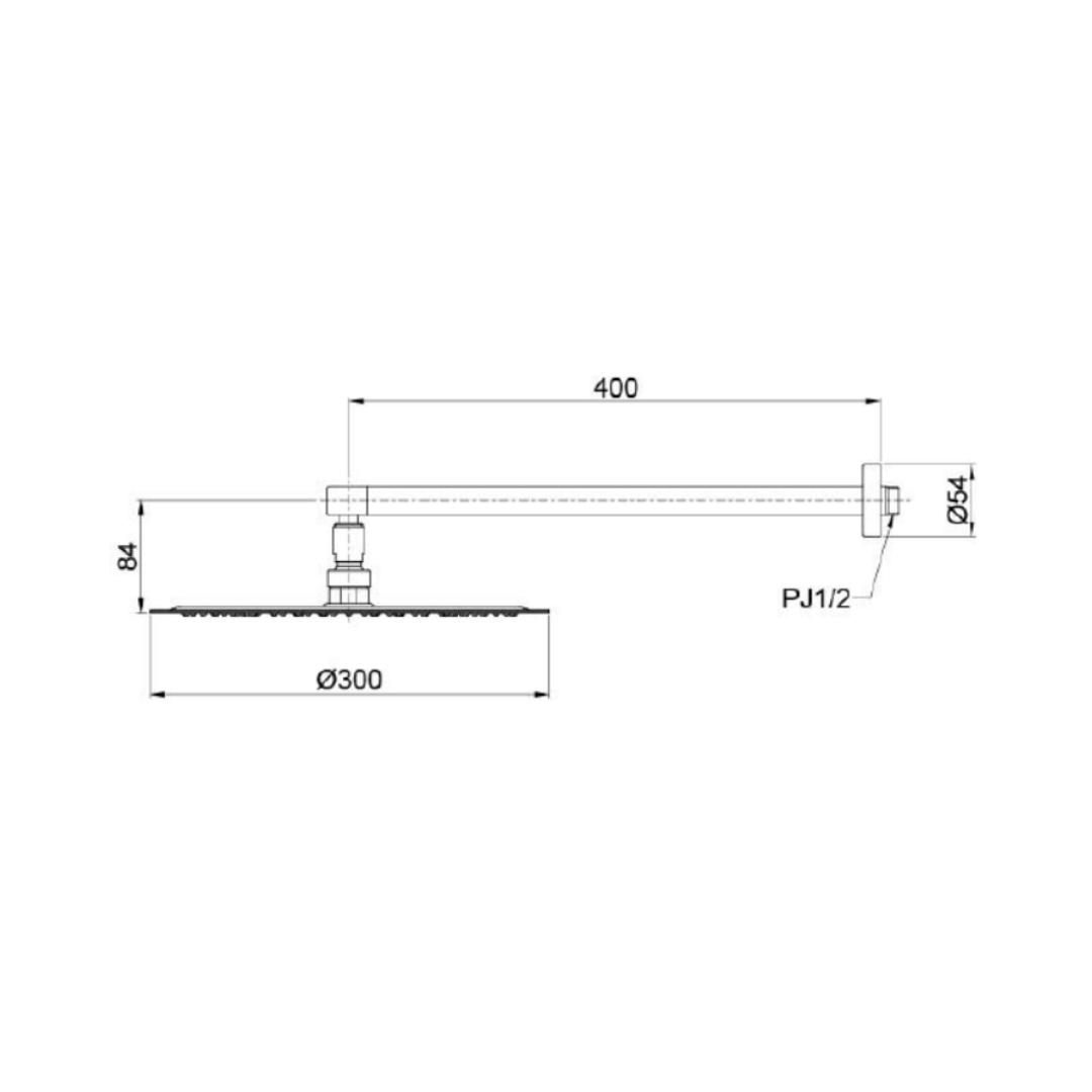 - Wall Mounted Shower Head With Shower Arm, 300mm, Round