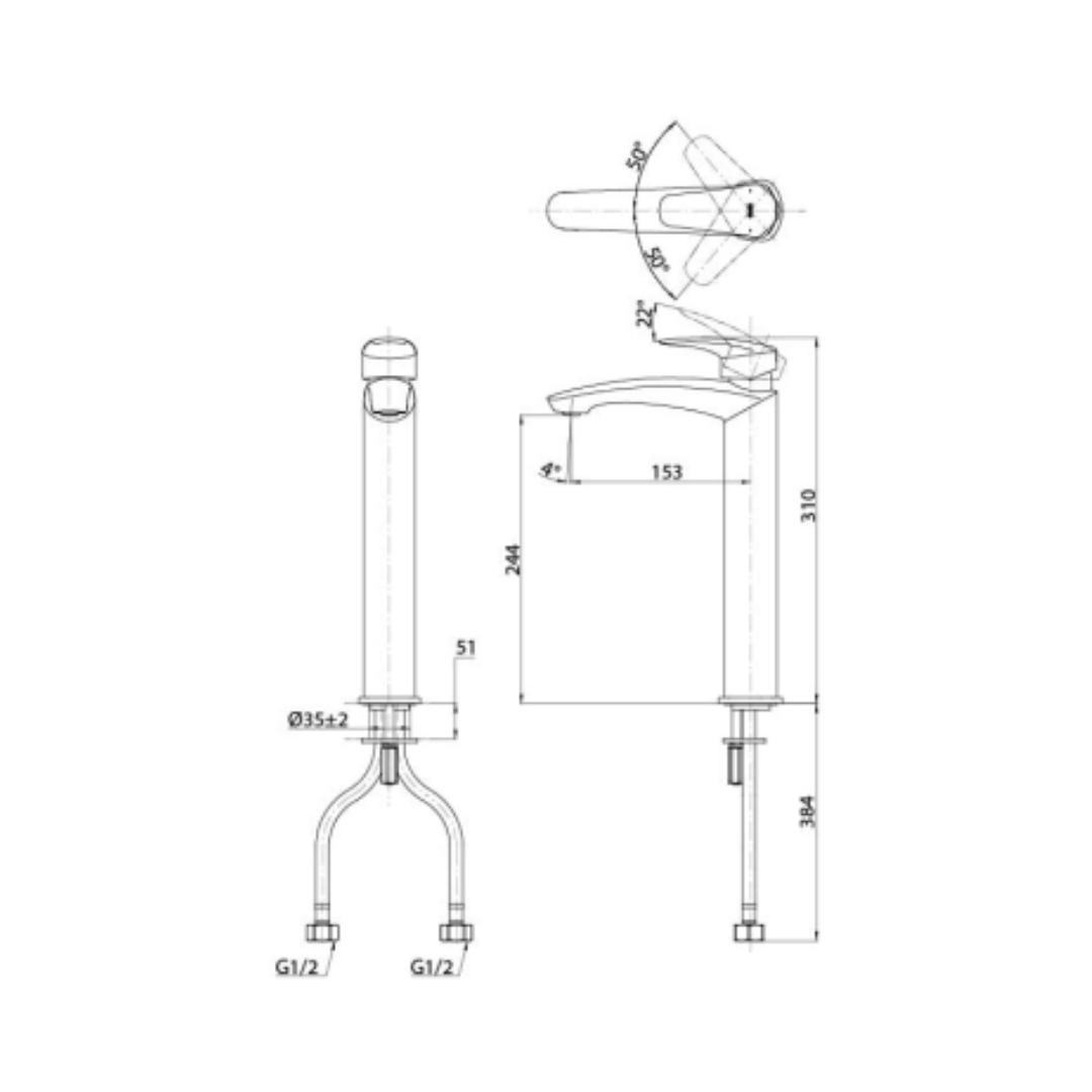 Toto Table Mounted Tall Boy Basin Mixer GF TLG11306B - Chrome