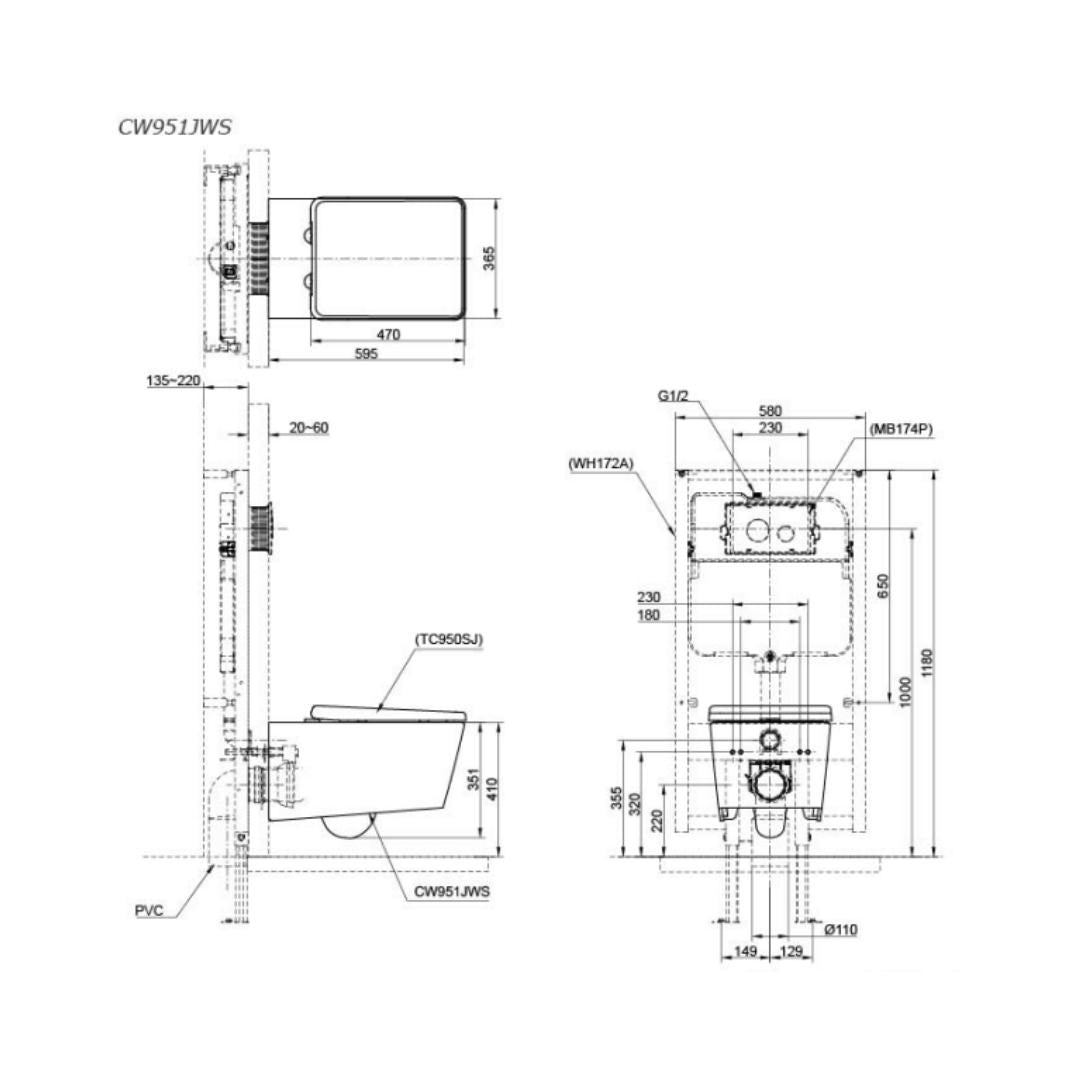 Toto Wall Hung White Closet WC Toja CW951JWS#W with P-Trap