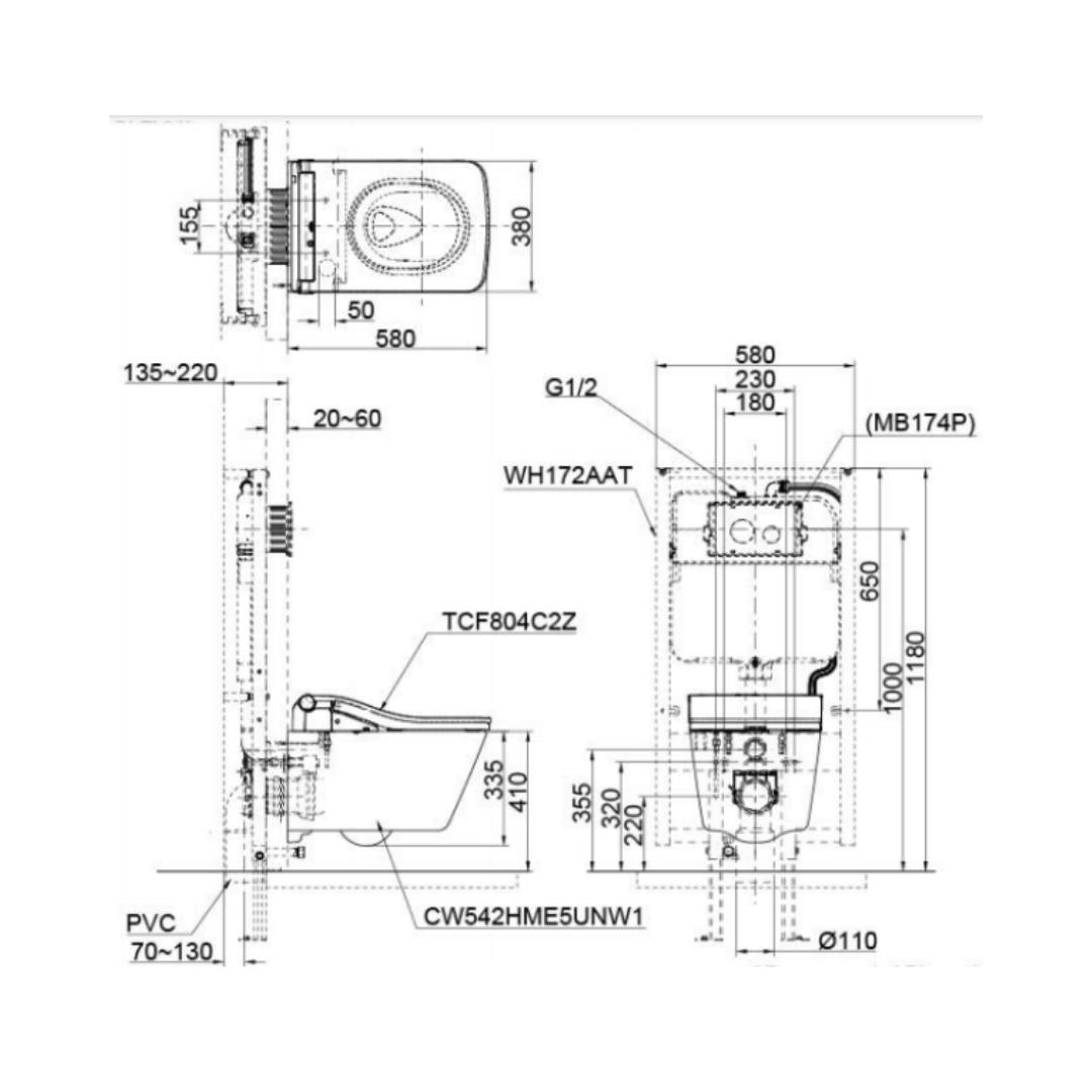 Toto Wall Hung White Closet WC Wall Hung Toilet CW522EMUNW1+TCF804C2Z#NW1 with P-Trap