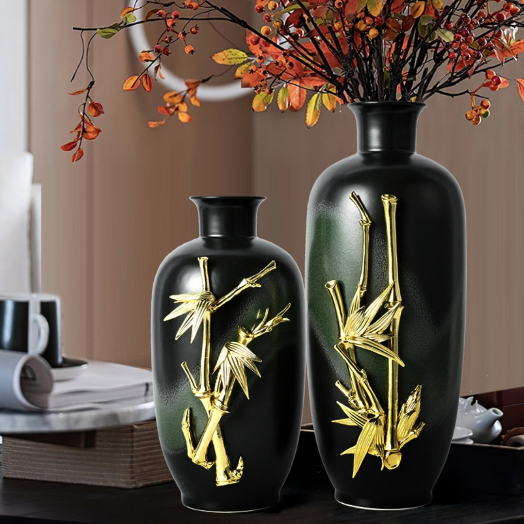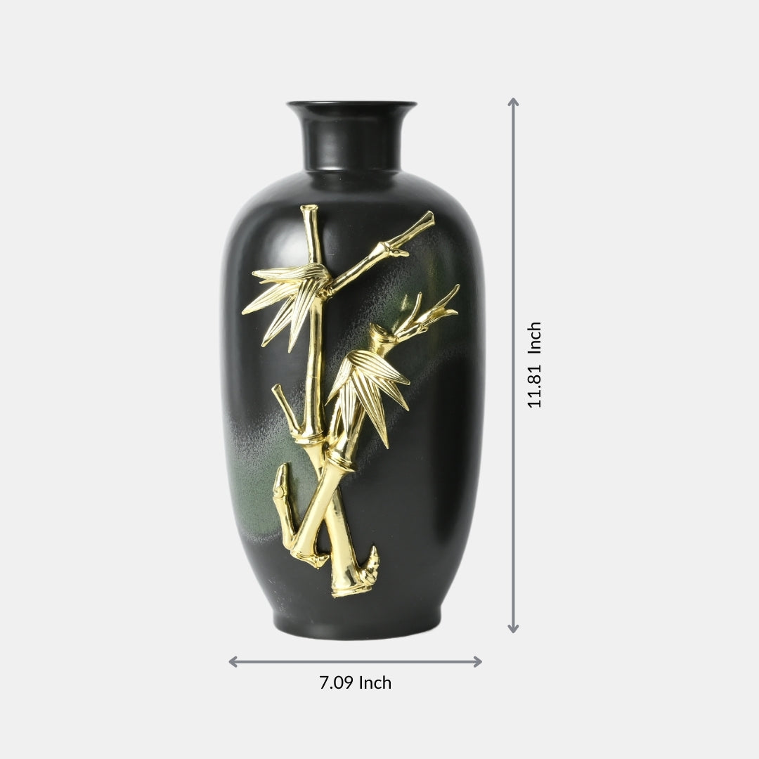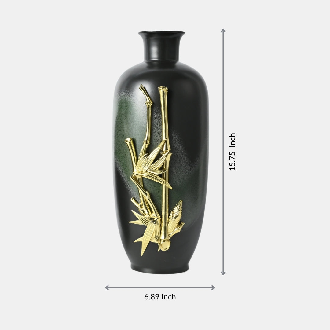 The Dark and Gold Fusion Vase is a captivating fusion of deep colors and subtle gold accents, all harmonized with a delicate shade of green. This vase stands as a testament to the art of blending contrasts to create exquisite beauty. Crafted from high-quality ceramic, its unique design and striking colors make it a conversation starter. Whether placed on your dining table or mantel, this vase adds a touch of glamour and intrigue to your decor. Elevate your living space with this exceptional piece of art.
