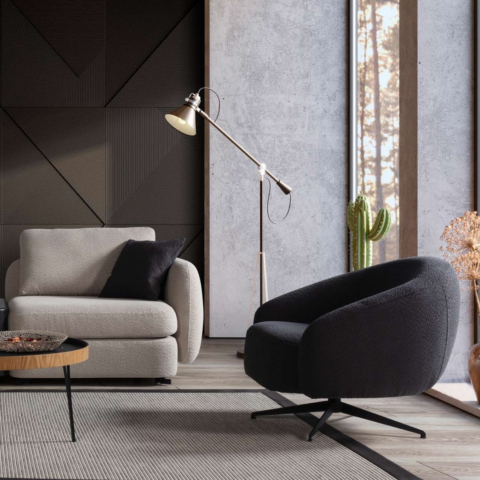 Elevate your space with the Vogue Swivel Armchair. Crafted with an ash wood frame and Turkish boucle fabric upholstery, this standard-sized armchair is a stylish and comfortable addition to any room.