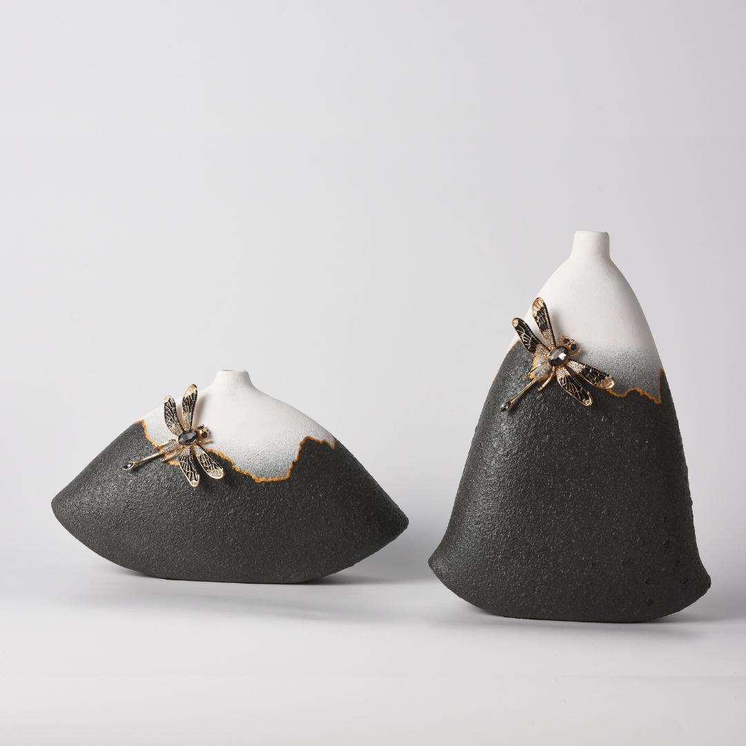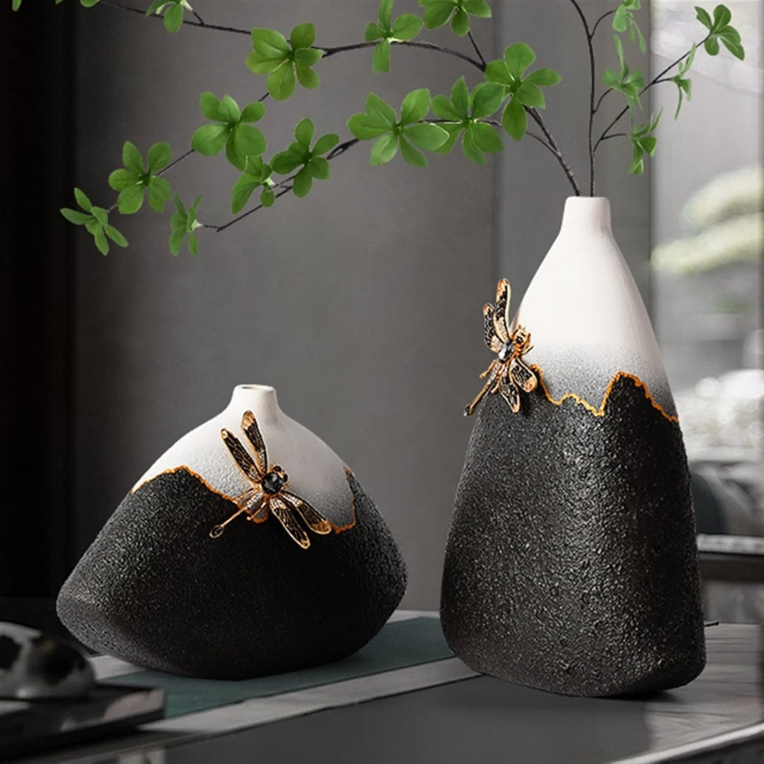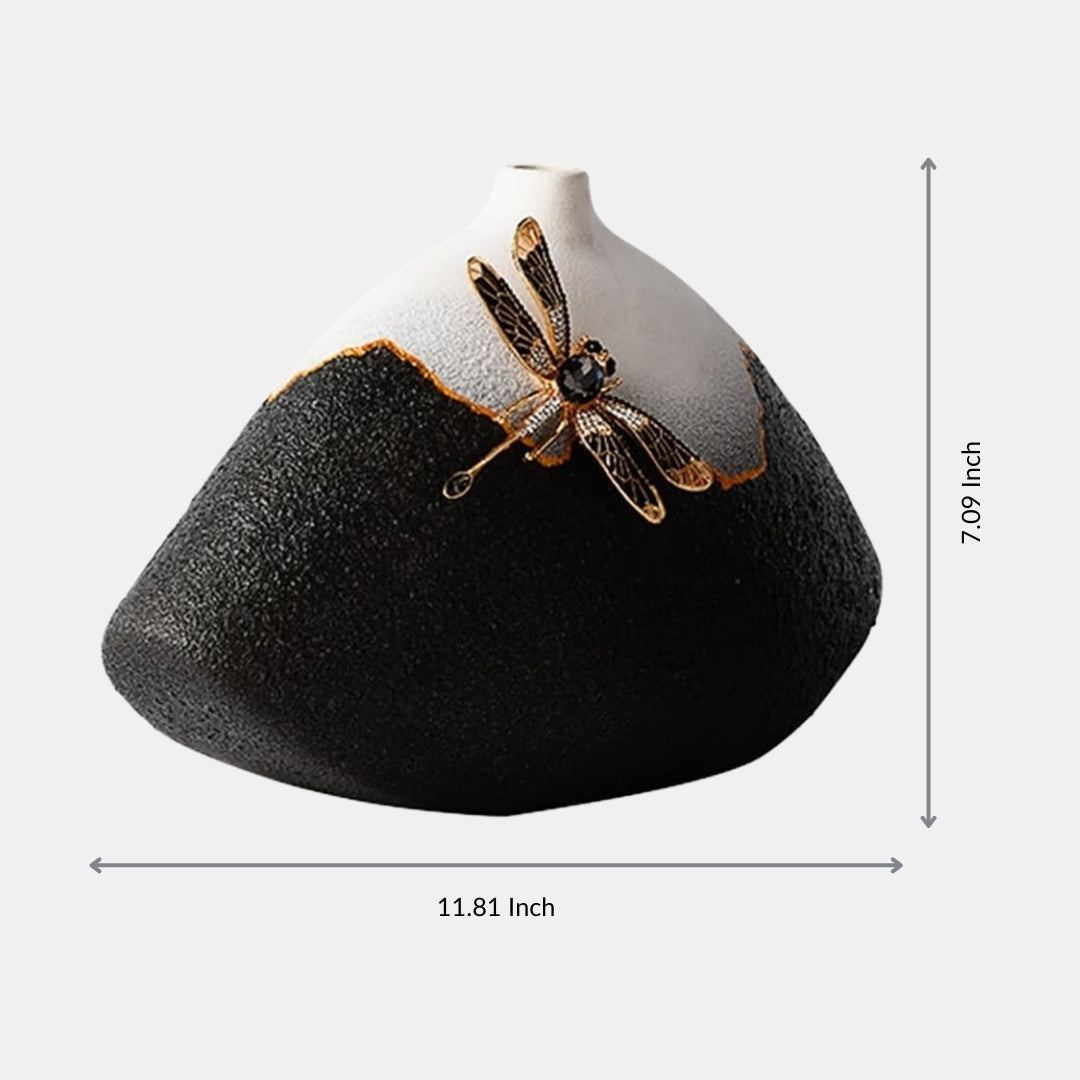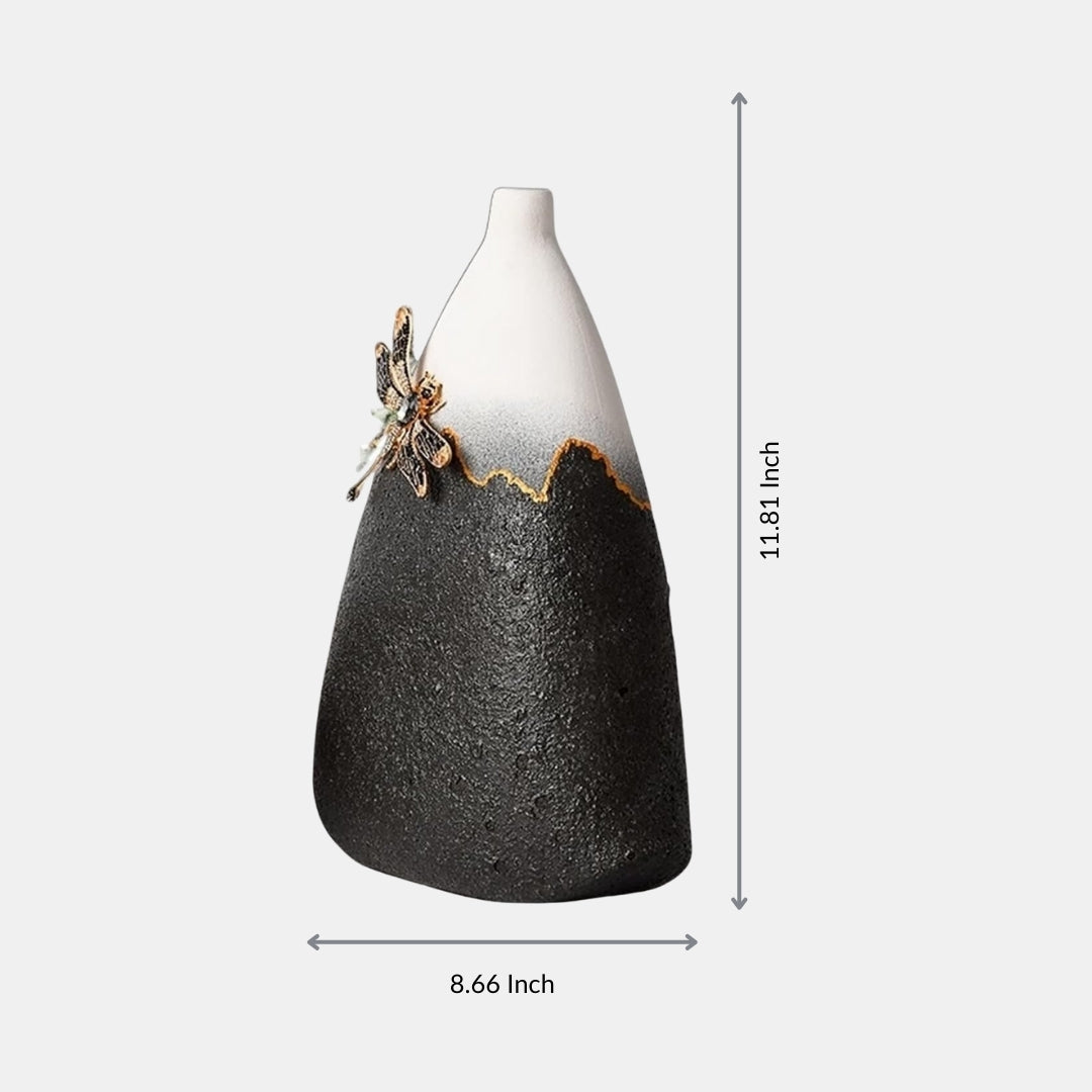 This charcoal grey and white vase, graced by a butterfly accent, is a striking blend of contrasting elements—charcoal elegance and delicate whimsy. Crafted with meticulous attention to detail, it showcases a charcoal grey and white color palette that adds depth and sophistication to your decor. The butterfly accent provides a touch of natural grace and charm. Whether displayed on your shelf, mantel, or as a centerpiece, it becomes a focal point that invites you to appreciate the harmonious interplay between color and nature. With this vase, you're not just decorating; you're celebrating the enchantment of contrast.