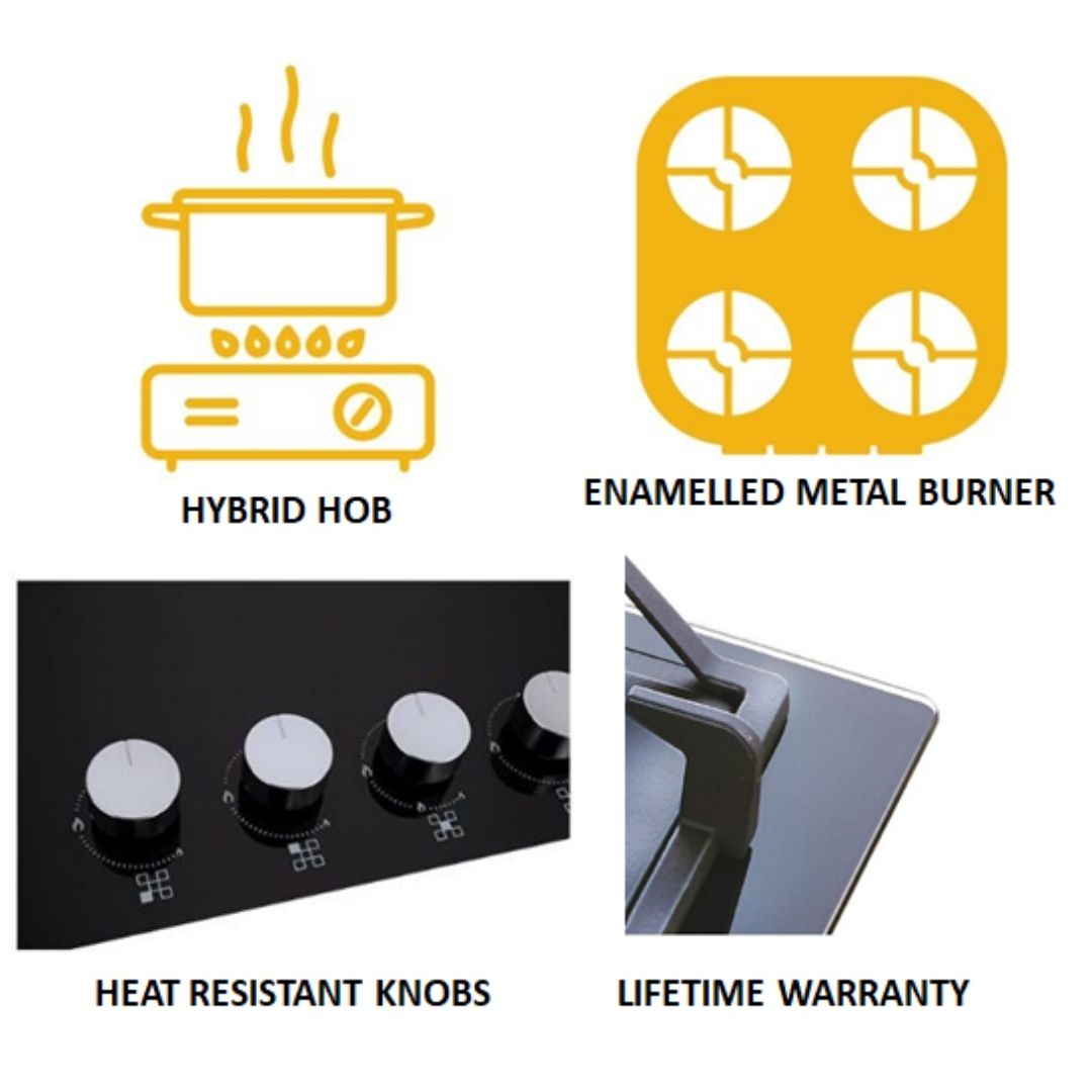10 Years warranty on Toughened glass and 5 years on Brass burners