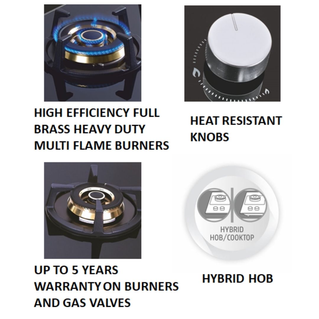 Whirlpool 70 cm 4 Burner Hob Elite Pro Series ELITE PRO BRASS HYBRID 704 MT