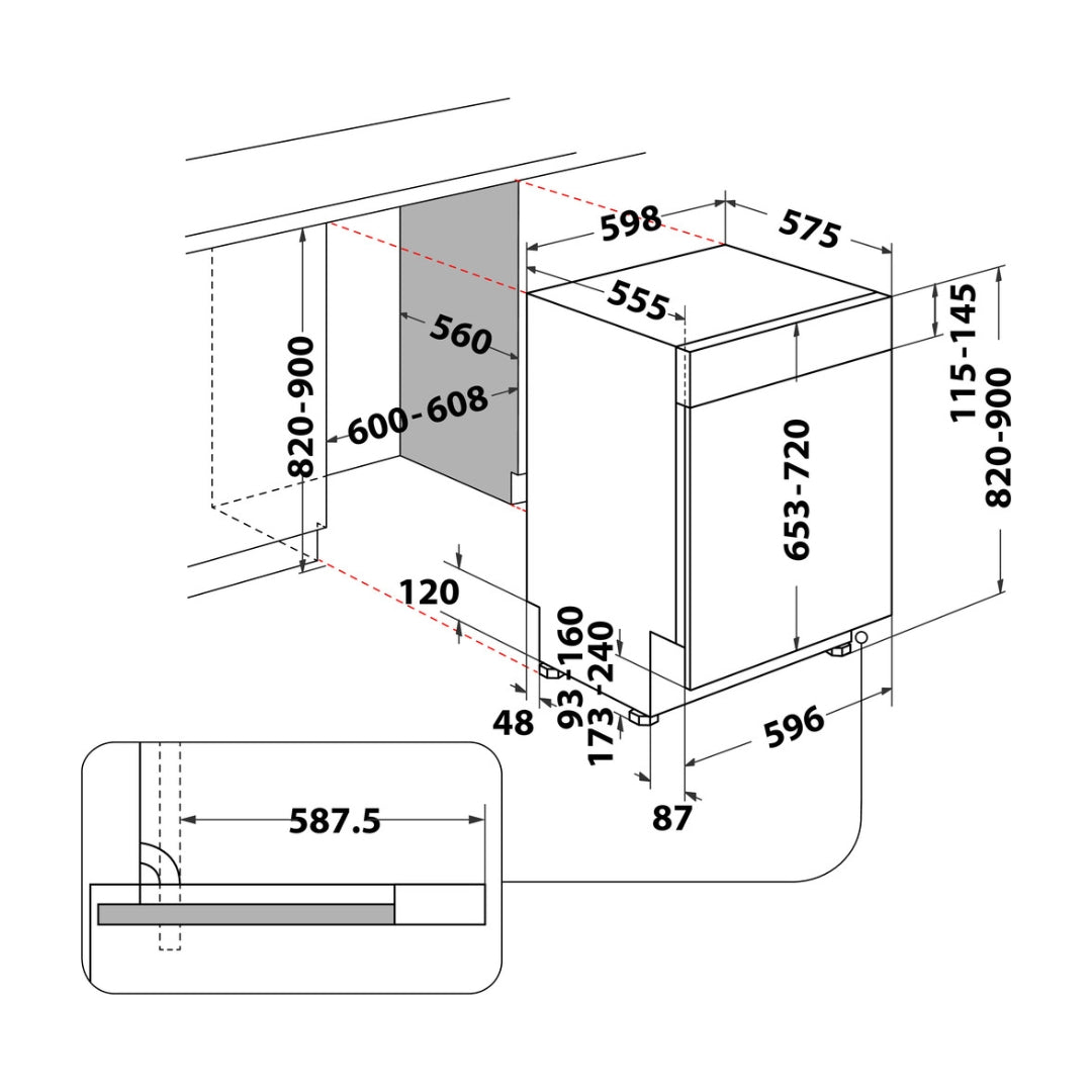 Whirlpool Semi Built in Dishwasher WBC 3C26X with 13 Place Settings